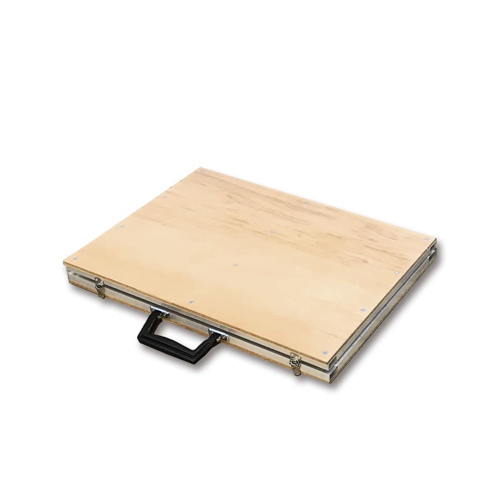 どこでもタップ君スタンダードは天板に建築材料であるベニヤ材を使用しコストを抑え、リーズナブルな価格と重量の軽減を実現したモデルです。