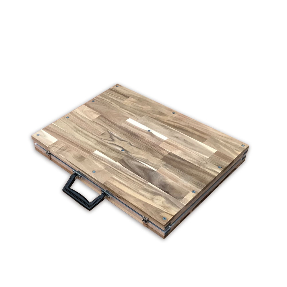 どこでもタップ君NANOは全長を600mm、展開時600mm×895mmとコンパクトな仕様で移動のし易さを重視したモデルです。天板にアカシア材を採用し、しっかりと輪郭のある高音を出せる仕様となっており、ストリートパフォーマンスやバンドリハ等におすすめです。また材質も硬く表面のほつれも少なく耐久性にも優れています。
