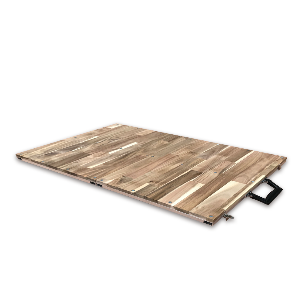 どこでもタップ君NANOは全長を600mm、展開時600mm×895mmとコンパクトな仕様で移動のし易さを重視したモデルです。天板にアカシア材を採用し、しっかりと輪郭のある高音を出せる仕様となっており、ストリートパフォーマンスやバンドリハ等におすすめです。また材質も硬く表面のほつれも少なく耐久性にも優れています。